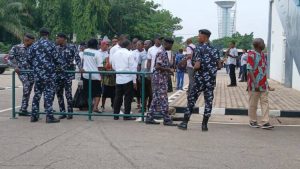 Security personnel including those of the Nigeria Police Force (NPF), the Department of State Services (DSS), and the Nigerian Security and Civil Defence Corps (NSDC) were stationed at the venue’s entry points and within.